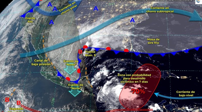 Para el Pacífico Centro se estima cielo medio nublado durante el día, con chubascos y posibles descargas eléctricas en Michoacán y lluvias aisladas en Colima, Jalisco y Nayarit Ambiente fresco por la mañana, frío en sierras de Michoacán y templado sobre costas. Por la tarde, ambiente caluroso en la región.