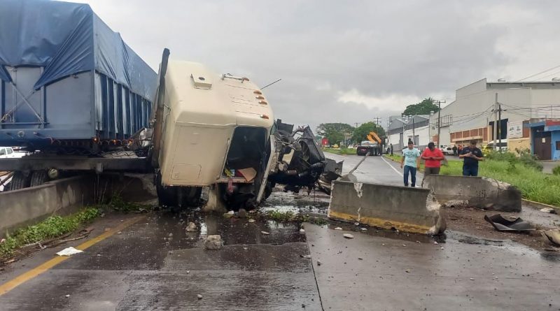 La dependencia estatal informa que un tractocamión de carga chocó contra el muro de contención de esa vía carretera, a la altura del puente peatonal que hace esquina con la avenida Gonzalo de Sandoval.