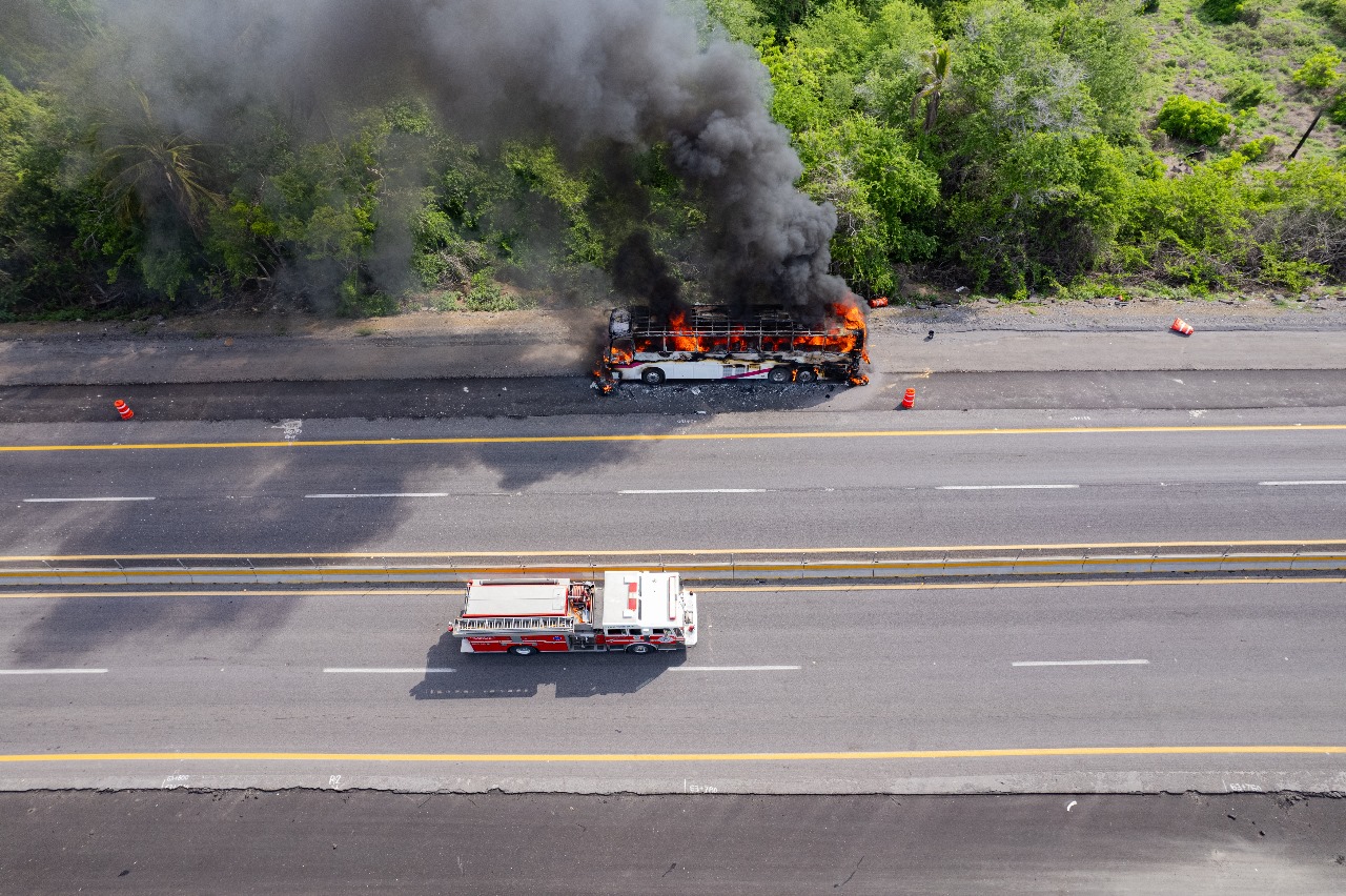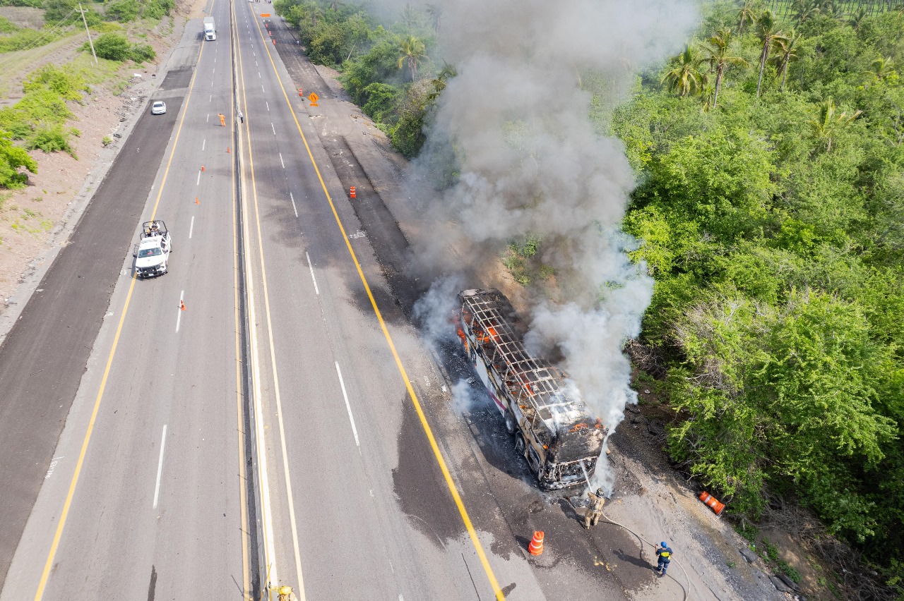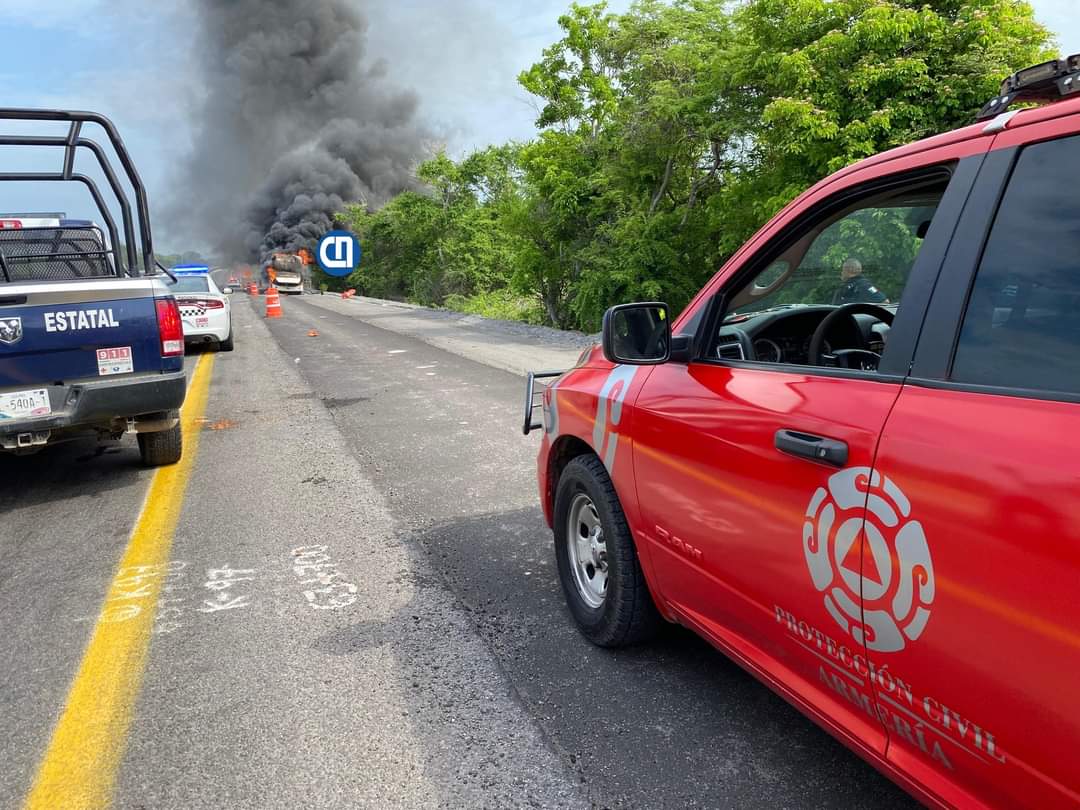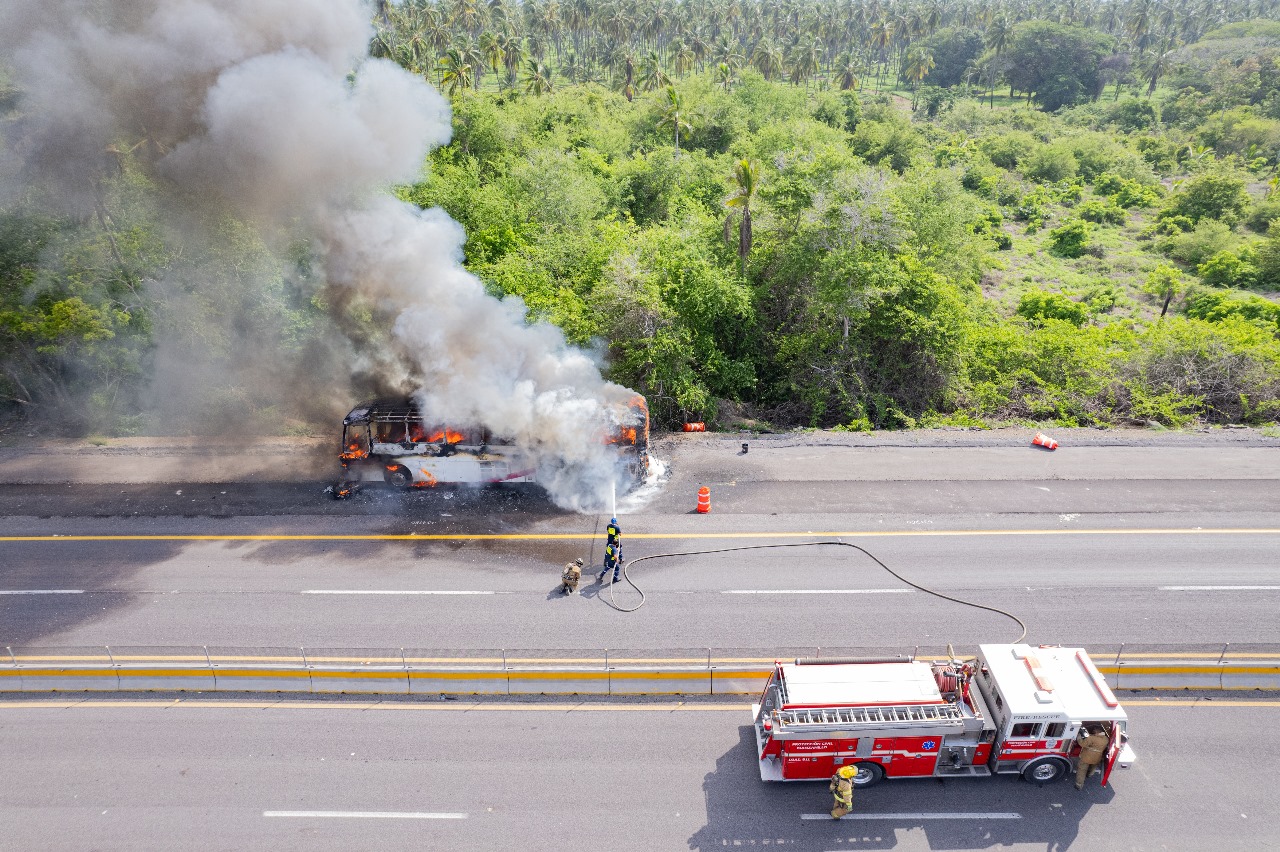 Como se informó oportunamente, la mañana de este miércoles 17 de julio se reportó el incendio de un autobús sobre la autopista Colima-Manzanillo, a la altura del kilómetro 63+700, que fue atendido por personal de las Unidades Municipales de Protección Civil de Armería y Manzanillo.