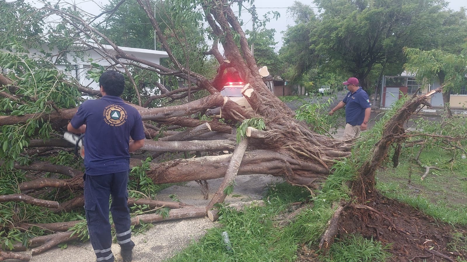En la zona rural del municipio, el saldo es de dos árboles caídos, uno en el kilómetro 6 de la carretera Villa de Álvarez-El Chivato, y otro en la comunidad de Juluapan.