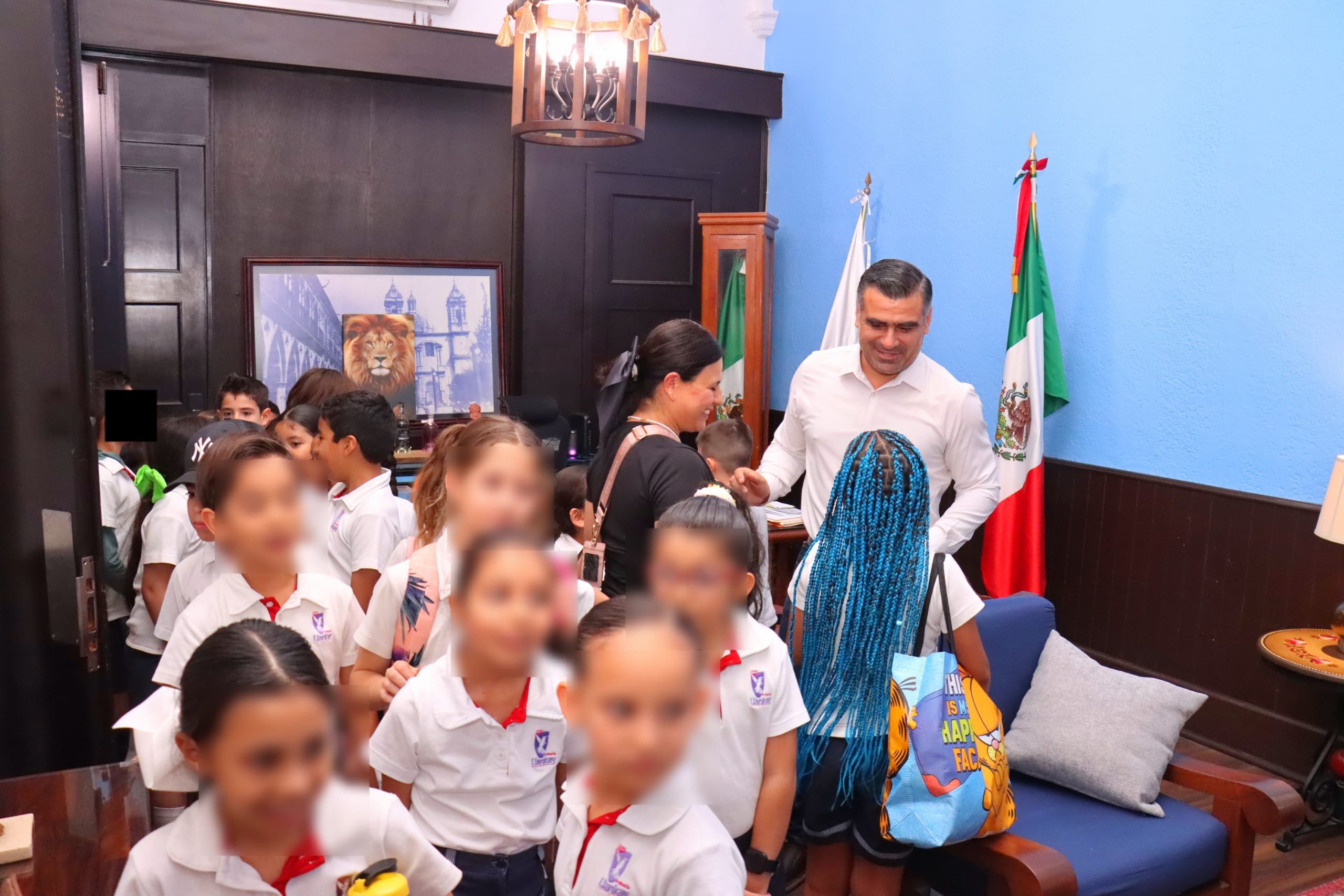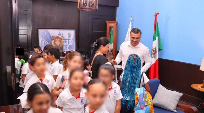 Visitan alumnos del colegio Liceo Llankay la presidencia municipal de Colima; los recibe el alcalde Riult Rivera