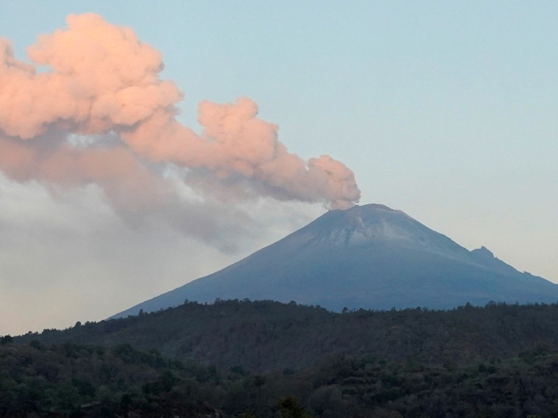 El volcán Popocatépetl ha presentado la expulsión de ceniza, aunque en menor cantidad que en días anteriores, la cual llegó a Puebla y Morelos.