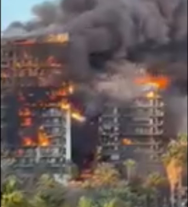 Autoridades españolas reportaron un incendio en el quinto piso de un edificio ubicado en el municipio de Valencia. El siniestro, ocurrido en el barrio de Campanar, se ha propagado a las plantas superiores.
